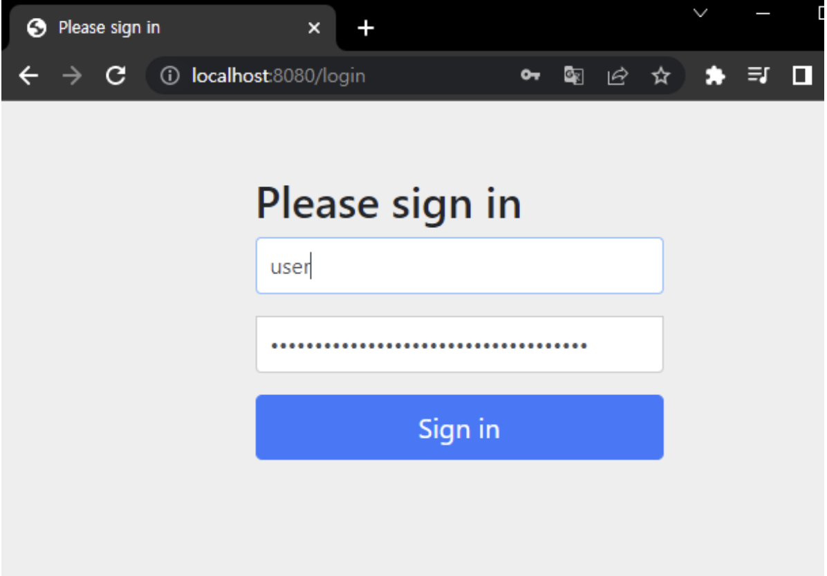 아이디는 user, 비밀번호는 생성한 대로 적어 sign in을 해줘야 내가 설정한 대로 요청-응답이 된다.