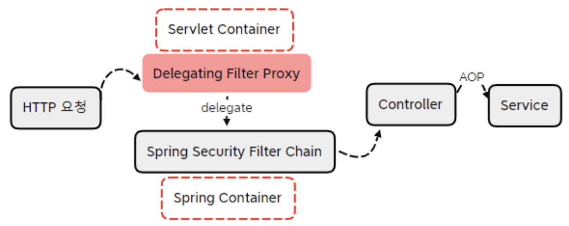 HTTP 요청이 서버에 들어오면 DelegatingFilterProxy를 통해 Spring Security Filter Chain이 생성된다.