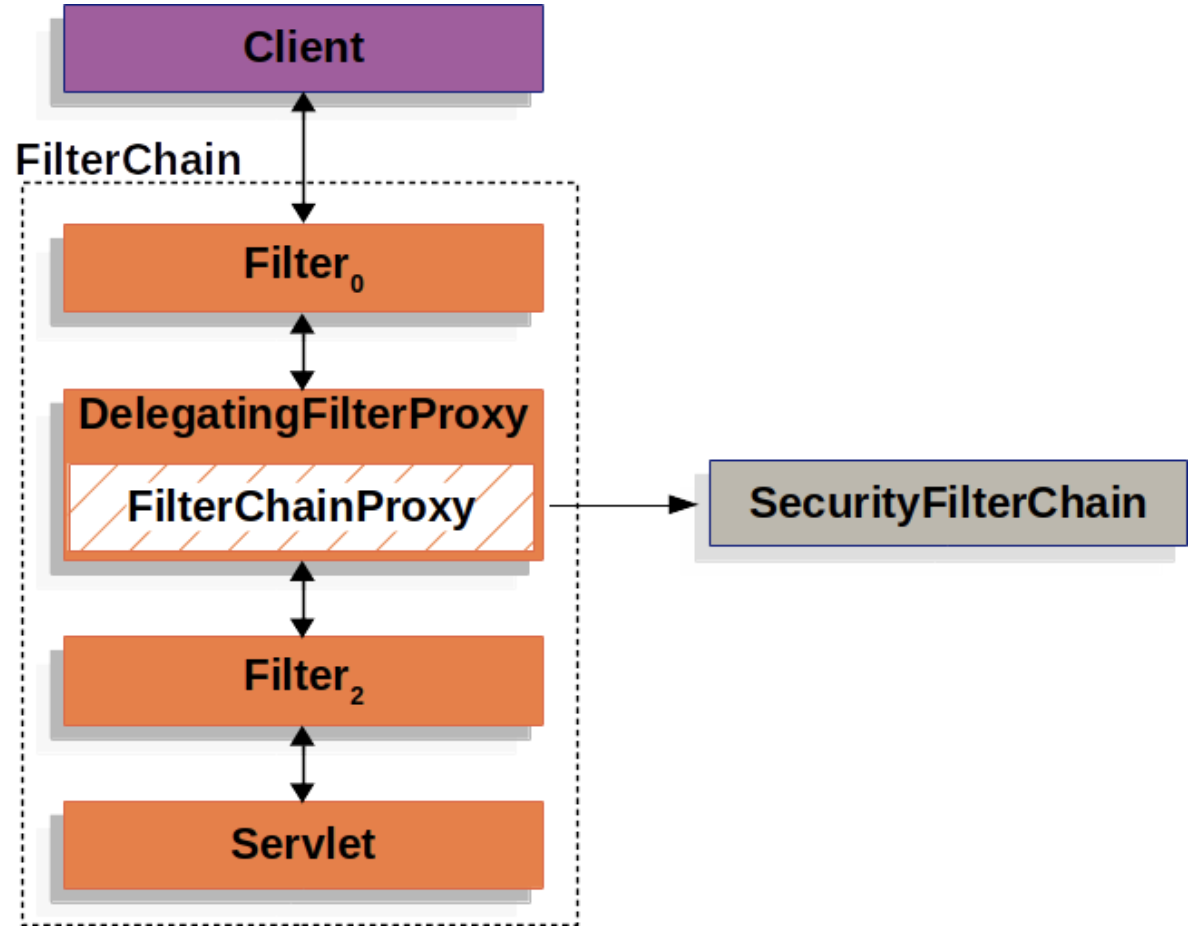 DelegatingFilterProxy > FilterChainProxy : SecurityFilterChain을 통해 많은 필터 인스턴스를 위임하게 해주는 특별한 필터