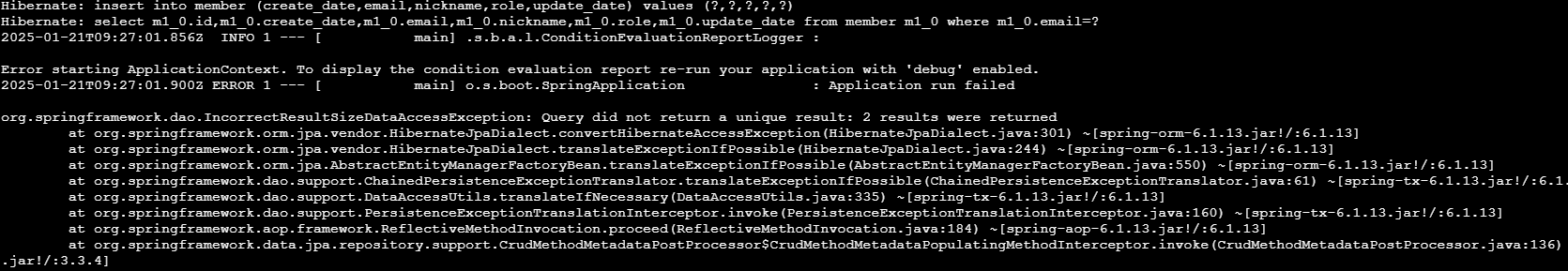 배포 서버 CI 자동화 적용 이후 오류가 발생했다.AWS EC2 에서 docker에 올라온 log를 확인해보니 IncorrectResultSizeDataAccessException 이 발생한 것을 확인