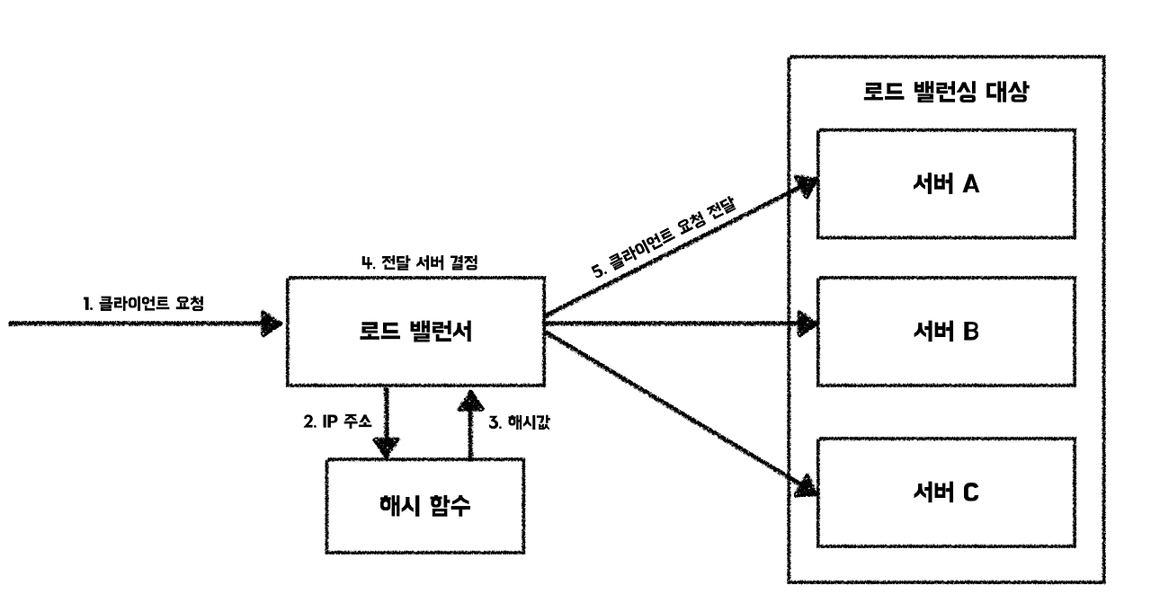 IP를 이용해 구한 해시값을 기반으로 요청을 전달할 서버를 결정합니다.