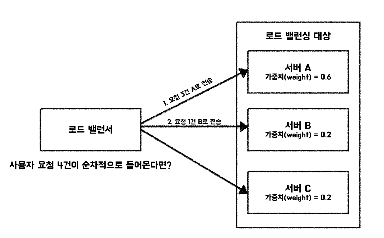 각 서버는 처리 능력과 가용 자원에 따라서 가중치를 할당 받게 됩니다.