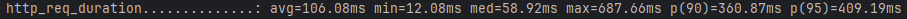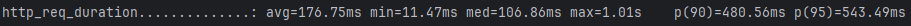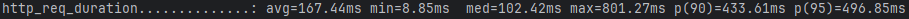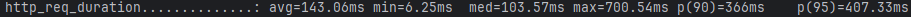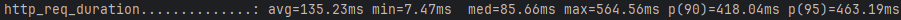90% 가 418.04ms의 응답 시간을 보이고, 95% 가 463.19ms 의 응답 시간을 보이고 있다.