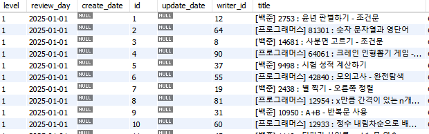 db에 좀 더 다양한 데이터를 넣어서 테스트 해보았다.