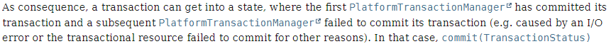 javadoc 내용을 보면 첫 번째 트랜잭션은 커밋에 성공했지만 후속 트랜잭션은 커밋에 실패한 상태가 될 수 있다고 되어있다.
